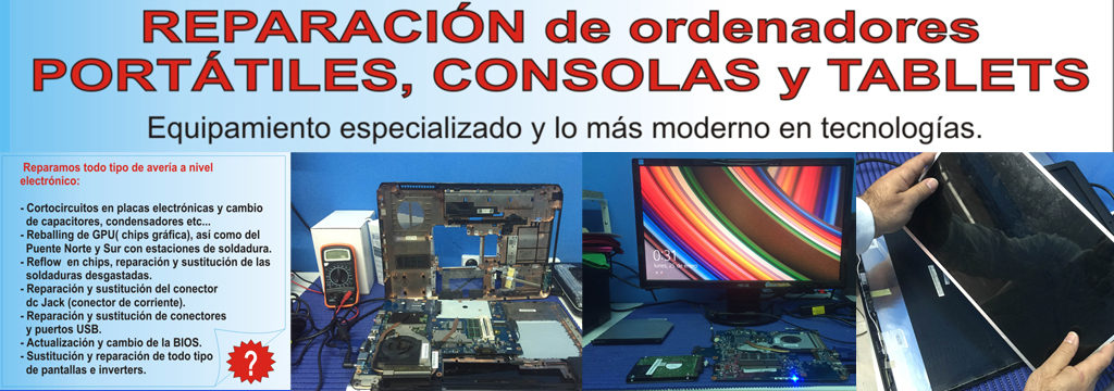 Reparamos todo tipo de avería a nivel electrónico, cortocircuitos en placas, cambio de capacitores, condensadores etc..., reballing de GPU, reparación o sustitición del conector dc jack conector de corriente, actualización de la BIOS, sustitución y reparación de todo tipo de pantalla e inverters.